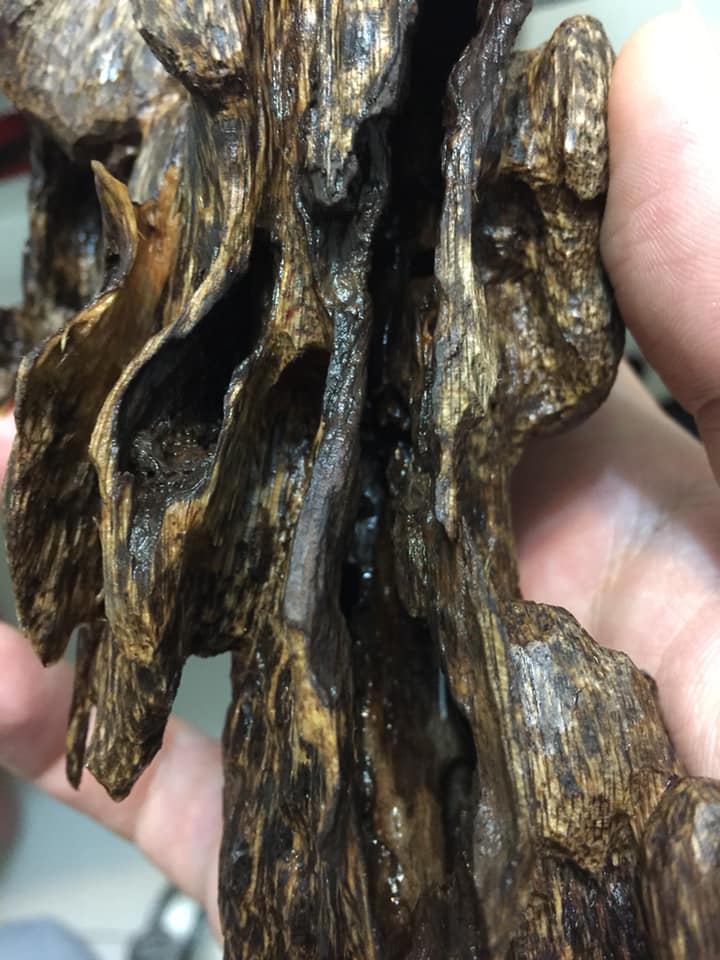 可以說是標準的薰香材料,高油脂的蟲漏得來不易,越油沉香就會越硬,